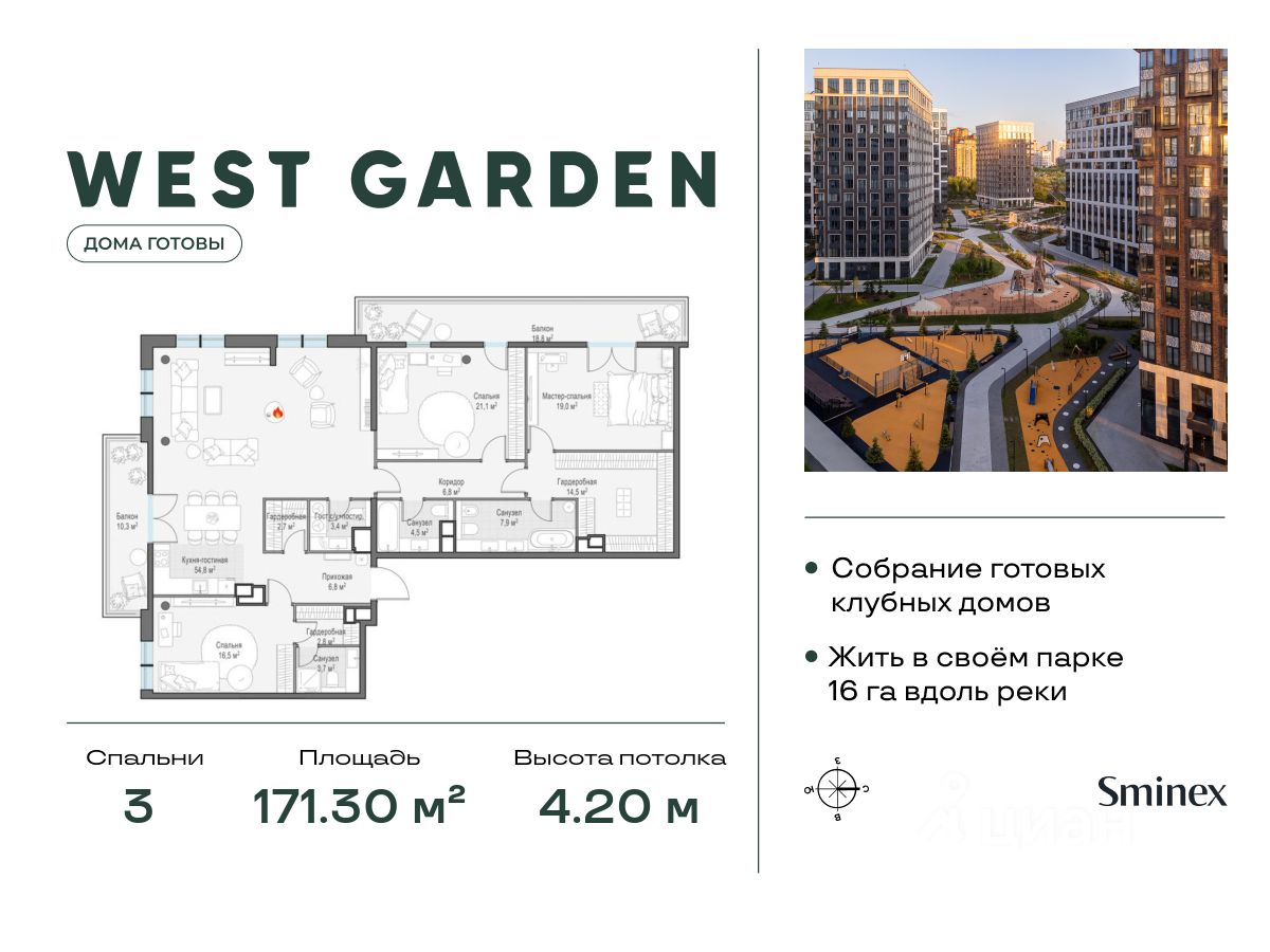 West Garden - это собрание клубных домов высотой 12-14 этажей в собственном парке 16 гектаров вдоль реки. Просторный среднеэтажный квартал расположен на Минской улице, в респектабельном Западном округе столицы. Вокруг премиальное окружение и более 1000 гектаров парков.