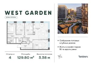 Комфортная и продуманная до мелочей 4-спальная квартира площадью 129.80 кв. м на 11 этаже в клубном доме 12. Увеличенная площадь окон и высота потолков 3.38 м дарят впечатляющие виды на парки, зеленые зоны и природные заказники.