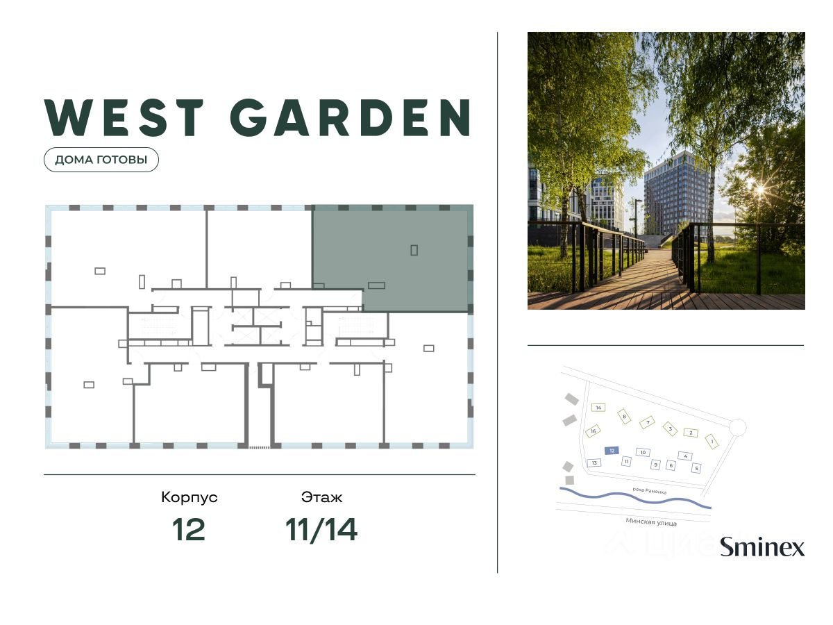 West Garden - это собрание клубных домов высотой 12-14 этажей в собственном парке 16 гектаров вдоль реки. Просторный среднеэтажный квартал расположен на Минской улице, в респектабельном Западном округе столицы. Вокруг премиальное окружение и более 1000 гектаров парков.