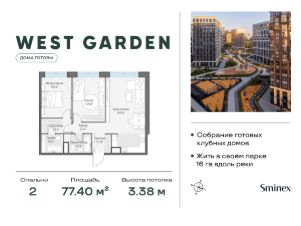 Комфортная и продуманная до мелочей 2-спальная квартира площадью 77.40 кв. м на 12 этаже в клубном доме 12. Увеличенная площадь окон и высота потолков 3.38 м дарят впечатляющие виды на парки, зеленые зоны и природные заказники.