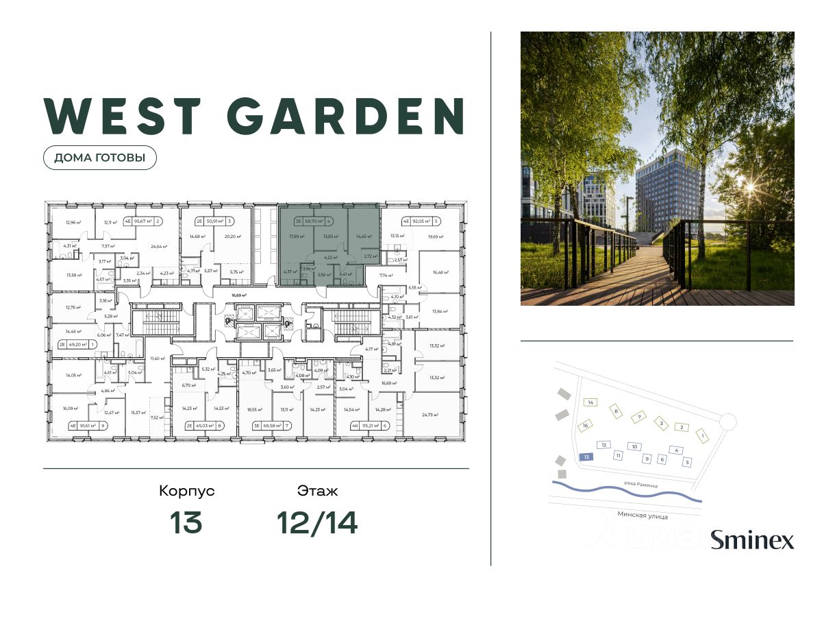 West Garden - это собрание клубных домов высотой 12-14 этажей в собственном парке 16 гектаров вдоль реки. Просторный среднеэтажный квартал расположен на Минской улице, в респектабельном Западном округе столицы. Вокруг премиальное окружение и более 1000 гектаров парков.