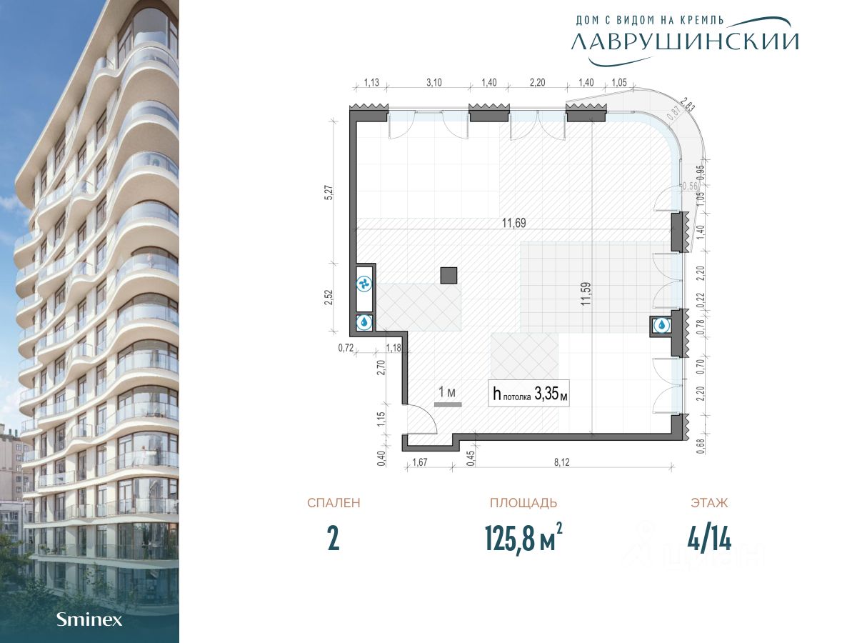 "Лаврушинский" - бескомпромиссный дом с лучшими видами на Кремль. Благодаря расположению всего в одном километре от Кремля, своей высоте и малоэтажной окружающей застройке, из квартир открываются поразительные прямые виды на главные достопримечательности центра Москвы, включая храм Христа Спасителя и собор Василия Блаженного. Расположение в глубине квартала, посередине парка, дает удивительное для центра ощущение тишины и простора. На закрытой территории находится самый большой на элитном рынке собственный ландшафтный парк площадью 1,4 га с фонтаном, ручьём, зонами для воркаута и тихого отдыха. KIDS LAB: развивающая детская площадка на улице и игровая комната в помещении. FIT LAB: фитнес-клуб с 25-метровым бассейном, beauty room, доступные только для жителей. В проекте уникальный выбор квартир с просторными балконами, пентхаусов с террасами, басcейнами и каминами, максимальными видовыми характеристиками, а также роскошных вилл. Всего - 153 квартиры и 101 продуманное планировочное решение. Высота потолков составляет от 3,5 до 8,25 м. В доме предусмотрен 2х-уровневый паркинг на 279 машино-места. В доме предусмотрен полный комплекс систем комфорта, включающий приточно-вытяжную вентиляцию с тонкой фильтрацией с принципом забора воздуха с высоты 50 метров для повышения продолжительности жизни, отдельный сервисный лифт для обслуживающего персонала и другие современные системы.