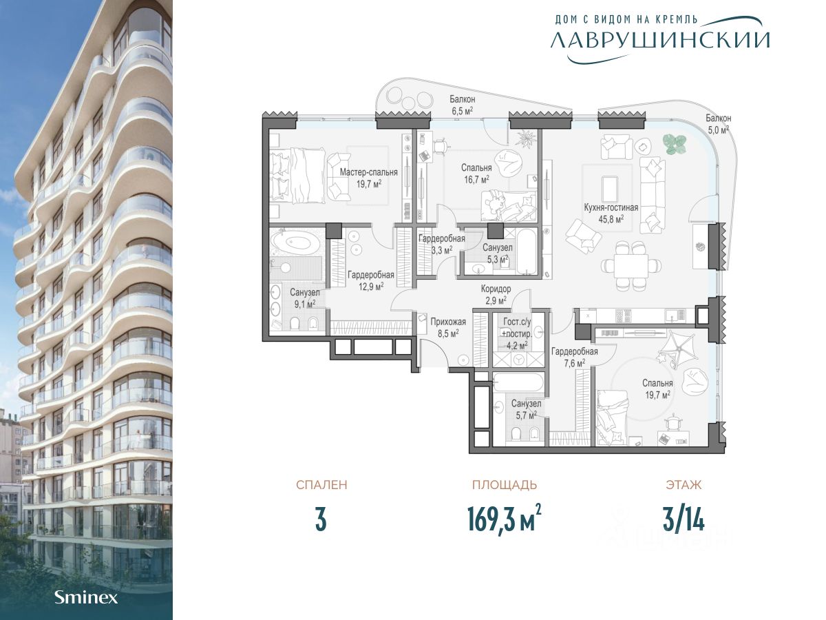 "Лаврушинский" - бескомпромиссный дом с лучшими видами на Кремль. Благодаря расположению всего в одном километре от Кремля, своей высоте и малоэтажной окружающей застройке, из квартир открываются поразительные прямые виды на главные достопримечательности центра Москвы, включая храм Христа Спасителя и собор Василия Блаженного. Расположение в глубине квартала, посередине парка, дает удивительное для центра ощущение тишины и простора. На закрытой территории находится самый большой на элитном рынке собственный ландшафтный парк площадью 1,4 га с фонтаном, ручьём, зонами для воркаута и тихого отдыха. KIDS LAB: развивающая детская площадка на улице и игровая комната в помещении. FIT LAB: фитнес-клуб с 25-метровым бассейном, beauty room, доступные только для жителей. В проекте уникальный выбор квартир с просторными балконами, пентхаусов с террасами, басcейнами и каминами, максимальными видовыми характеристиками, а также роскошных вилл. Всего - 153 квартиры и 101 продуманное планировочное решение. Высота потолков составляет от 3,5 до 8,25 м. В доме предусмотрен 2х-уровневый паркинг на 279 машино-места. В доме предусмотрен полный комплекс систем комфорта, включающий приточно-вытяжную вентиляцию с тонкой фильтрацией с принципом забора воздуха с высоты 50 метров для повышения продолжительности жизни, отдельный сервисный лифт для обслуживающего персонала и другие современные системы.