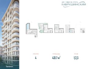 "Лаврушинский" - бескомпромиссный дом с лучшими видами на Кремль. Благодаря расположению всего в одном километре от Кремля, своей высоте и малоэтажной окружающей застройке, из квартир открываются поразительные прямые виды на главные достопримечательности центра Москвы, включая храм Христа Спасителя и собор Василия Блаженного. Расположение в глубине квартала, посередине парка, дает удивительное для центра ощущение тишины и простора. На закрытой территории находится самый большой на элитном рынке собственный ландшафтный парк площадью 1,4 га с фонтаном, ручьём, зонами для воркаута и тихого отдыха. KIDS LAB: развивающая детская площадка на улице и игровая комната в помещении. FIT LAB: фитнес-клуб с 25-метровым бассейном, beauty room, доступные только для жителей. В проекте уникальный выбор квартир с просторными балконами, пентхаусов с террасами, басcейнами и каминами, максимальными видовыми характеристиками, а также роскошных вилл. Всего - 153 квартиры и 101 продуманное планировочное решение. Высота потолков составляет от 3,5 до 8,25 м. В доме предусмотрен 2х-уровневый паркинг на 279 машино-места. В доме предусмотрен полный комплекс систем комфорта, включающий приточно-вытяжную вентиляцию с тонкой фильтрацией с принципом забора воздуха с высоты 50 метров для повышения продолжительности жизни, отдельный сервисный лифт для обслуживающего персонала и другие современные системы.
