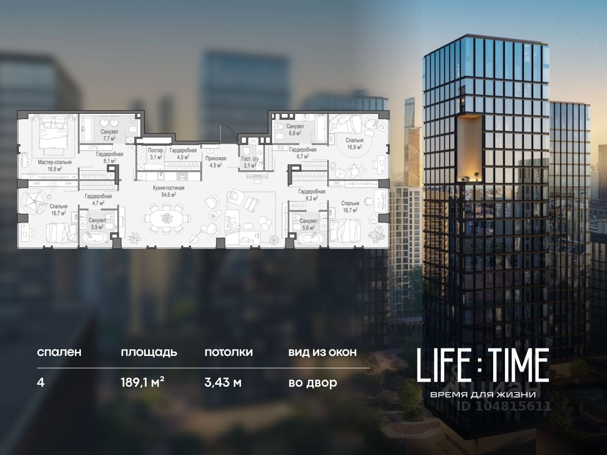 Life Time - роскошный современный квартал на Пресне, в наиболее быстро растущем премиальном районе ЦАО. Его насыщенная инфраструктура и выгодное расположение дарят время для жизни. Вы больше не тратите его на дорогу или ожидание, при этом ни в чём себе не отказывая. На территории предусмотрено всё для комфортной жизни: • двор-парк площадью 1,8 гектара с прудом и фонтанами; • Clubhouse - инфраструктурный центр в отдельном здании с исчерпывающими возможностями для спорта, отдыха и досуга только для жителей; • спортивная инфраструктура на улице и в помещении, в том числе бассейн длиной 25 метров, хот-таб, хаммам, сауна, бьюти-зона; • клубная гостиная с террасой; • всё для развития и досуга детей любого возраста, в том числе детский сад и школа. Life Time находится в центре сложившегося премиального района, в окружении многочисленных парков. Удобная транспортная доступность и прямой выезд на Звенигородское шоссе позволяют без проблем добраться до Садового кольца и Москва-Сити. Архитектурный стиль квартала - роскошный минимализм. Дома десятилетиями будут выглядеть современно. В Life Time представлен широкий выбор как квартир, так и особых форматов: двухэтажные пентхаусы с каминами и террасами, скай-виллы.