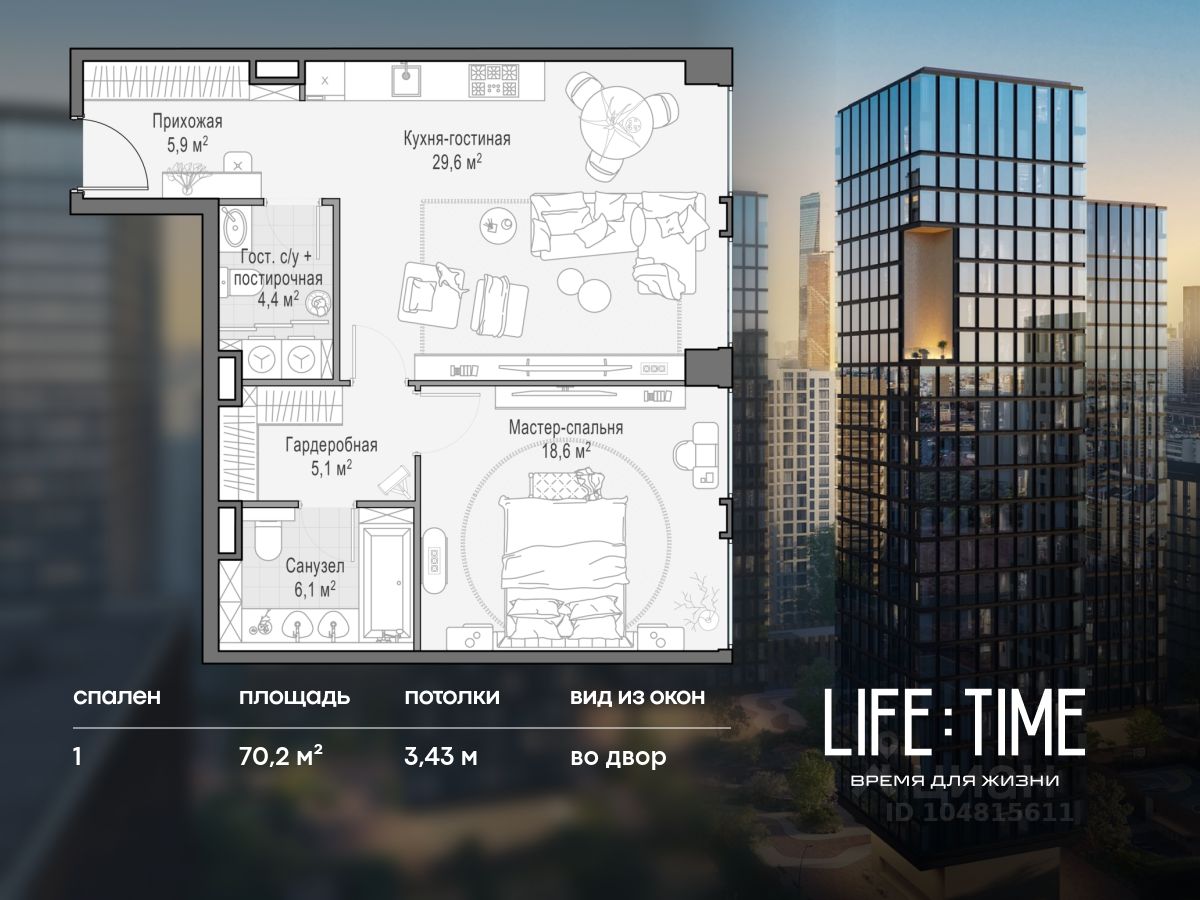 Life Time - роскошный современный квартал на Пресне, в наиболее быстро растущем премиальном районе ЦАО. Его насыщенная инфраструктура и выгодное расположение дарят время для жизни. Вы больше не тратите его на дорогу или ожидание, при этом ни в чём себе не отказывая. На территории предусмотрено всё для комфортной жизни: • двор-парк площадью 1,8 гектара с прудом и фонтанами; • Clubhouse - инфраструктурный центр в отдельном здании с исчерпывающими возможностями для спорта, отдыха и досуга только для жителей; • спортивная инфраструктура на улице и в помещении, в том числе бассейн длиной 25 метров, хот-таб, хаммам, сауна, бьюти-зона; • клубная гостиная с террасой; • всё для развития и досуга детей любого возраста, в том числе детский сад и школа. Life Time находится в центре сложившегося премиального района, в окружении многочисленных парков. Удобная транспортная доступность и прямой выезд на Звенигородское шоссе позволяют без проблем добраться до Садового кольца и Москва-Сити. Архитектурный стиль квартала - роскошный минимализм. Дома десятилетиями будут выглядеть современно. В Life Time представлен широкий выбор как квартир, так и особых форматов: двухэтажные пентхаусы с каминами и террасами, скай-виллы.