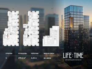 Life Time - роскошный современный квартал на Пресне, в наиболее быстро растущем премиальном районе ЦАО. Его насыщенная инфраструктура и выгодное расположение дарят время для жизни. Вы больше не тратите его на дорогу или ожидание, при этом ни в чём себе не отказывая. На территории предусмотрено всё для комфортной жизни: • двор-парк площадью 1,8 гектара с прудом и фонтанами; • Clubhouse - инфраструктурный центр в отдельном здании с исчерпывающими возможностями для спорта, отдыха и досуга только для жителей; • спортивная инфраструктура на улице и в помещении, в том числе бассейн длиной 25 метров, хот-таб, хаммам, сауна, бьюти-зона; • клубная гостиная с террасой; • всё для развития и досуга детей любого возраста, в том числе детский сад и школа. Life Time находится в центре сложившегося премиального района, в окружении многочисленных парков. Удобная транспортная доступность и прямой выезд на Звенигородское шоссе позволяют без проблем добраться до Садового кольца и Москва-Сити. Архитектурный стиль квартала - роскошный минимализм. Дома десятилетиями будут выглядеть современно. В Life Time представлен широкий выбор как квартир, так и особых форматов: двухэтажные пентхаусы с каминами и террасами, скай-виллы.