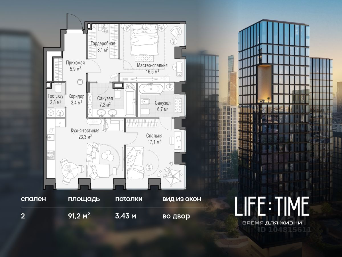 Life Time - роскошный современный квартал на Пресне, в наиболее быстро растущем премиальном районе ЦАО. Его насыщенная инфраструктура и выгодное расположение дарят время для жизни. Вы больше не тратите его на дорогу или ожидание, при этом ни в чём себе не отказывая. На территории предусмотрено всё для комфортной жизни: • двор-парк площадью 1,8 гектара с прудом и фонтанами; • Clubhouse - инфраструктурный центр в отдельном здании с исчерпывающими возможностями для спорта, отдыха и досуга только для жителей; • спортивная инфраструктура на улице и в помещении, в том числе бассейн длиной 25 метров, хот-таб, хаммам, сауна, бьюти-зона; • клубная гостиная с террасой; • всё для развития и досуга детей любого возраста, в том числе детский сад и школа. Life Time находится в центре сложившегося премиального района, в окружении многочисленных парков. Удобная транспортная доступность и прямой выезд на Звенигородское шоссе позволяют без проблем добраться до Садового кольца и Москва-Сити. Архитектурный стиль квартала - роскошный минимализм. Дома десятилетиями будут выглядеть современно. В Life Time представлен широкий выбор как квартир, так и особых форматов: двухэтажные пентхаусы с каминами и террасами, скай-виллы.