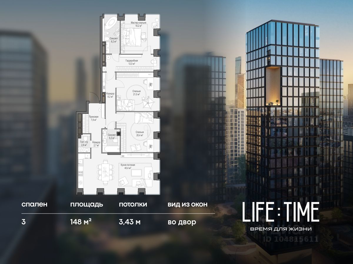 Life Time - роскошный современный квартал на Пресне, в наиболее быстро растущем премиальном районе ЦАО. Его насыщенная инфраструктура и выгодное расположение дарят время для жизни. Вы больше не тратите его на дорогу или ожидание, при этом ни в чём себе не отказывая. На территории предусмотрено всё для комфортной жизни: • двор-парк площадью 1,8 гектара с прудом и фонтанами; • Clubhouse - инфраструктурный центр в отдельном здании с исчерпывающими возможностями для спорта, отдыха и досуга только для жителей; • спортивная инфраструктура на улице и в помещении, в том числе бассейн длиной 25 метров, хот-таб, хаммам, сауна, бьюти-зона; • клубная гостиная с террасой; • всё для развития и досуга детей любого возраста, в том числе детский сад и школа. Life Time находится в центре сложившегося премиального района, в окружении многочисленных парков. Удобная транспортная доступность и прямой выезд на Звенигородское шоссе позволяют без проблем добраться до Садового кольца и Москва-Сити. Архитектурный стиль квартала - роскошный минимализм. Дома десятилетиями будут выглядеть современно. В Life Time представлен широкий выбор как квартир, так и особых форматов: двухэтажные пентхаусы с каминами и террасами, скай-виллы.