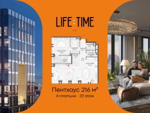 Двухэтажный пентхаус площадью 111,2 кв. м с террасой (36,2 кв. м). Просторная кухня-гостиная станет точкой притяжения всей семьи. Высокие потолки (3,5 метра) и панорамные окна позволяют наслаждаться лучшими закатами Пресненского района. Две спальные комнаты с окном в ванной расположены на втором этаже, а собственная терраса с неповторимыми видами делает пентхаус идеальным местом для комфортной и по-настоящему роскошной жизни. Life Time - роскошный современный квартал на Пресне, в наиболее быстро растущем премиальном районе ЦАО. Его насыщенная инфраструктура и выгодное расположение дарят время для жизни. Вы больше не тратите его на дорогу или ожидание, при этом ни в чём себе не отказывая. На территории предусмотрено всё для комфортной жизни: • двор-парк площадью 1,8 гектара с прудом и фонтанами; • Clubhouse - инфраструктурный центр в отдельном здании с исчерпывающими возможностями для спорта, отдыха и досуга только для жителей; • спортивная инфраструктура на улице и в помещении, в том числе бассейн длиной 25 метров, хот-таб, хаммам, сауна, бьюти-зона; • клубная гостиная с террасой; • всё для развития и досуга детей любого возраста, в том числе детский сад и школа. Life Time находится в центре сложившегося премиального района, в окружении многочисленных парков. Удобная транспортная доступность и прямой выезд на Звенигородское шоссе позволяют без проблем добраться до Садового кольца и Москва-Сити. Архитектурный стиль квартала - роскошный минимализм. Дома десятилетиями будут выглядеть современно.