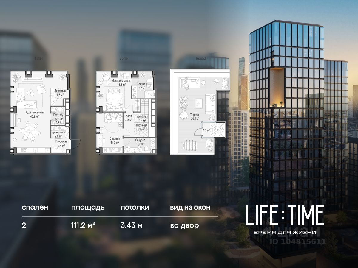 Life Time - роскошный современный квартал на Пресне, в наиболее быстро растущем премиальном районе ЦАО. Его насыщенная инфраструктура и выгодное расположение дарят время для жизни. Вы больше не тратите его на дорогу или ожидание, при этом ни в чём себе не отказывая. На территории предусмотрено всё для комфортной жизни: • двор-парк площадью 1,8 гектара с прудом и фонтанами; • Clubhouse - инфраструктурный центр в отдельном здании с исчерпывающими возможностями для спорта, отдыха и досуга только для жителей; • спортивная инфраструктура на улице и в помещении, в том числе бассейн длиной 25 метров, хот-таб, хаммам, сауна, бьюти-зона; • клубная гостиная с террасой; • всё для развития и досуга детей любого возраста, в том числе детский сад и школа. Life Time находится в центре сложившегося премиального района, в окружении многочисленных парков. Удобная транспортная доступность и прямой выезд на Звенигородское шоссе позволяют без проблем добраться до Садового кольца и Москва-Сити. Архитектурный стиль квартала - роскошный минимализм. Дома десятилетиями будут выглядеть современно. В Life Time представлен широкий выбор как квартир, так и особых форматов: двухэтажные пентхаусы с каминами и террасами, скай-виллы.