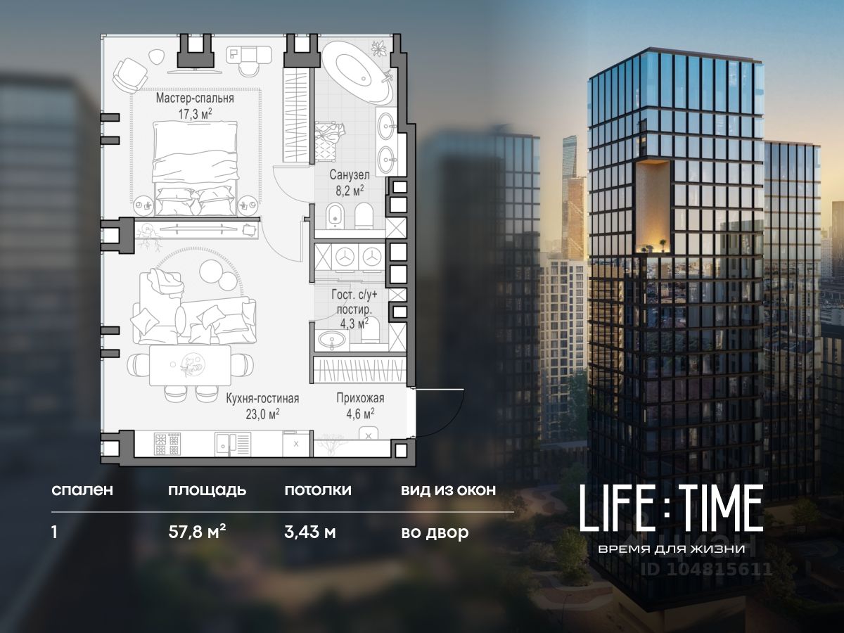 Life Time - роскошный современный квартал на Пресне, в наиболее быстро растущем премиальном районе ЦАО. Его насыщенная инфраструктура и выгодное расположение дарят время для жизни. Вы больше не тратите его на дорогу или ожидание, при этом ни в чём себе не отказывая. На территории предусмотрено всё для комфортной жизни: • двор-парк площадью 1,8 гектара с прудом и фонтанами; • Clubhouse - инфраструктурный центр в отдельном здании с исчерпывающими возможностями для спорта, отдыха и досуга только для жителей; • спортивная инфраструктура на улице и в помещении, в том числе бассейн длиной 25 метров, хот-таб, хаммам, сауна, бьюти-зона; • клубная гостиная с террасой; • всё для развития и досуга детей любого возраста, в том числе детский сад и школа. Life Time находится в центре сложившегося премиального района, в окружении многочисленных парков. Удобная транспортная доступность и прямой выезд на Звенигородское шоссе позволяют без проблем добраться до Садового кольца и Москва-Сити. Архитектурный стиль квартала - роскошный минимализм. Дома десятилетиями будут выглядеть современно. В Life Time представлен широкий выбор как квартир, так и особых форматов: двухэтажные пентхаусы с каминами и террасами, скай-виллы.