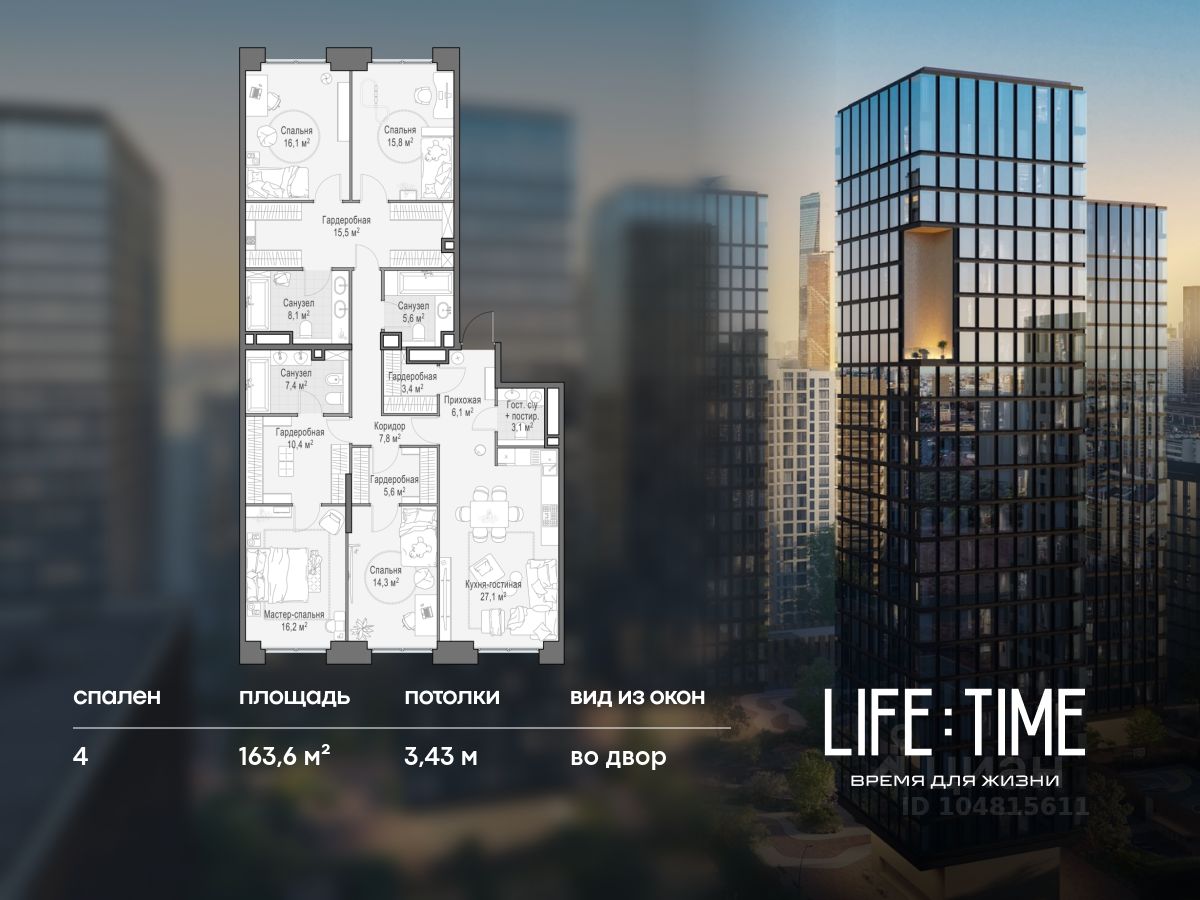 Life Time - роскошный современный квартал на Пресне, в наиболее быстро растущем премиальном районе ЦАО. Его насыщенная инфраструктура и выгодное расположение дарят время для жизни. Вы больше не тратите его на дорогу или ожидание, при этом ни в чём себе не отказывая. На территории предусмотрено всё для комфортной жизни: • двор-парк площадью 1,8 гектара с прудом и фонтанами; • Clubhouse - инфраструктурный центр в отдельном здании с исчерпывающими возможностями для спорта, отдыха и досуга только для жителей; • спортивная инфраструктура на улице и в помещении, в том числе бассейн длиной 25 метров, хот-таб, хаммам, сауна, бьюти-зона; • клубная гостиная с террасой; • всё для развития и досуга детей любого возраста, в том числе детский сад и школа. Life Time находится в центре сложившегося премиального района, в окружении многочисленных парков. Удобная транспортная доступность и прямой выезд на Звенигородское шоссе позволяют без проблем добраться до Садового кольца и Москва-Сити. Архитектурный стиль квартала - роскошный минимализм. Дома десятилетиями будут выглядеть современно. В Life Time представлен широкий выбор как квартир, так и особых форматов: двухэтажные пентхаусы с каминами и террасами, скай-виллы.