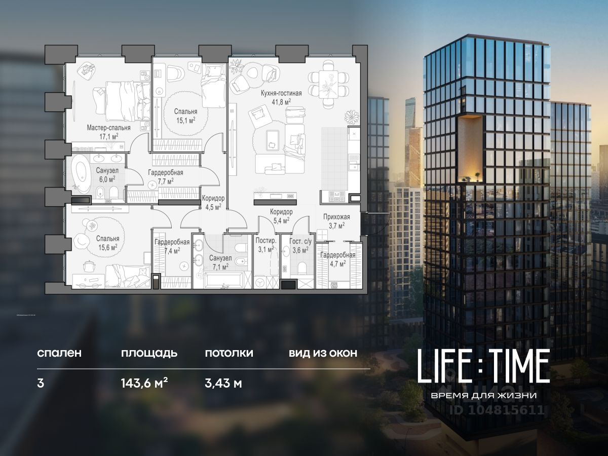 Life Time - роскошный современный квартал на Пресне, в наиболее быстро растущем премиальном районе ЦАО. Его насыщенная инфраструктура и выгодное расположение дарят время для жизни. Вы больше не тратите его на дорогу или ожидание, при этом ни в чём себе не отказывая. На территории предусмотрено всё для комфортной жизни: • двор-парк площадью 1,8 гектара с прудом и фонтанами; • Clubhouse - инфраструктурный центр в отдельном здании с исчерпывающими возможностями для спорта, отдыха и досуга только для жителей; • спортивная инфраструктура на улице и в помещении, в том числе бассейн длиной 25 метров, хот-таб, хаммам, сауна, бьюти-зона; • клубная гостиная с террасой; • всё для развития и досуга детей любого возраста, в том числе детский сад и школа. Life Time находится в центре сложившегося премиального района, в окружении многочисленных парков. Удобная транспортная доступность и прямой выезд на Звенигородское шоссе позволяют без проблем добраться до Садового кольца и Москва-Сити. Архитектурный стиль квартала - роскошный минимализм. Дома десятилетиями будут выглядеть современно. В Life Time представлен широкий выбор как квартир, так и особых форматов: двухэтажные пентхаусы с каминами и террасами, скай-виллы.