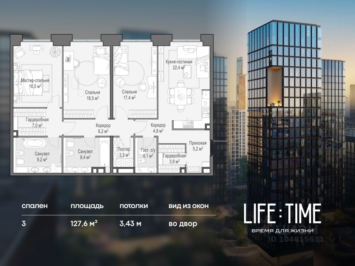 Life Time - роскошный современный квартал на Пресне, в наиболее быстро растущем премиальном районе ЦАО. Его насыщенная инфраструктура и выгодное расположение дарят время для жизни. Вы больше не тратите его на дорогу или ожидание, при этом ни в чём себе не отказывая. На территории предусмотрено всё для комфортной жизни: • двор-парк площадью 1,8 гектара с прудом и фонтанами; • Clubhouse - инфраструктурный центр в отдельном здании с исчерпывающими возможностями для спорта, отдыха и досуга только для жителей; • спортивная инфраструктура на улице и в помещении, в том числе бассейн длиной 25 метров, хот-таб, хаммам, сауна, бьюти-зона; • клубная гостиная с террасой; • всё для развития и досуга детей любого возраста, в том числе детский сад и школа. Life Time находится в центре сложившегося премиального района, в окружении многочисленных парков. Удобная транспортная доступность и прямой выезд на Звенигородское шоссе позволяют без проблем добраться до Садового кольца и Москва-Сити. Архитектурный стиль квартала - роскошный минимализм. Дома десятилетиями будут выглядеть современно. В Life Time представлен широкий выбор как квартир, так и особых форматов: двухэтажные пентхаусы с каминами и террасами, скай-виллы.