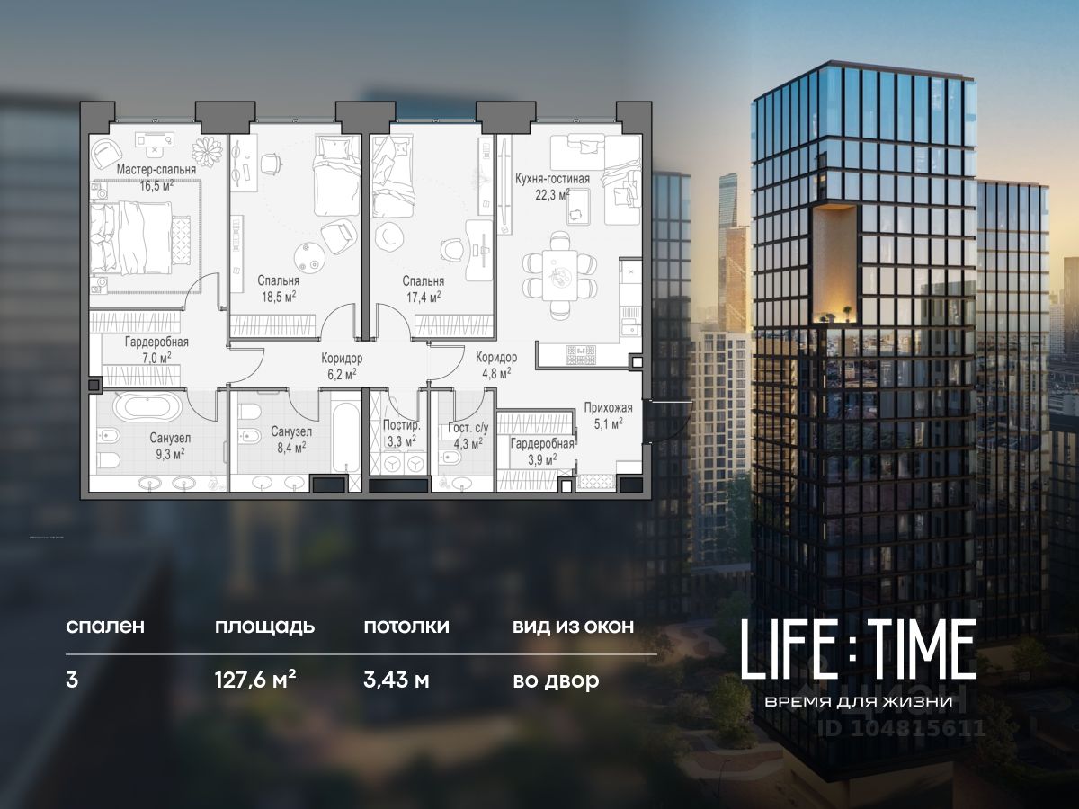Life Time - роскошный современный квартал на Пресне, в наиболее быстро растущем премиальном районе ЦАО. Его насыщенная инфраструктура и выгодное расположение дарят время для жизни. Вы больше не тратите его на дорогу или ожидание, при этом ни в чём себе не отказывая. На территории предусмотрено всё для комфортной жизни: • двор-парк площадью 1,8 гектара с прудом и фонтанами; • Clubhouse - инфраструктурный центр в отдельном здании с исчерпывающими возможностями для спорта, отдыха и досуга только для жителей; • спортивная инфраструктура на улице и в помещении, в том числе бассейн длиной 25 метров, хот-таб, хаммам, сауна, бьюти-зона; • клубная гостиная с террасой; • всё для развития и досуга детей любого возраста, в том числе детский сад и школа. Life Time находится в центре сложившегося премиального района, в окружении многочисленных парков. Удобная транспортная доступность и прямой выезд на Звенигородское шоссе позволяют без проблем добраться до Садового кольца и Москва-Сити. Архитектурный стиль квартала - роскошный минимализм. Дома десятилетиями будут выглядеть современно. В Life Time представлен широкий выбор как квартир, так и особых форматов: двухэтажные пентхаусы с каминами и террасами, скай-виллы.