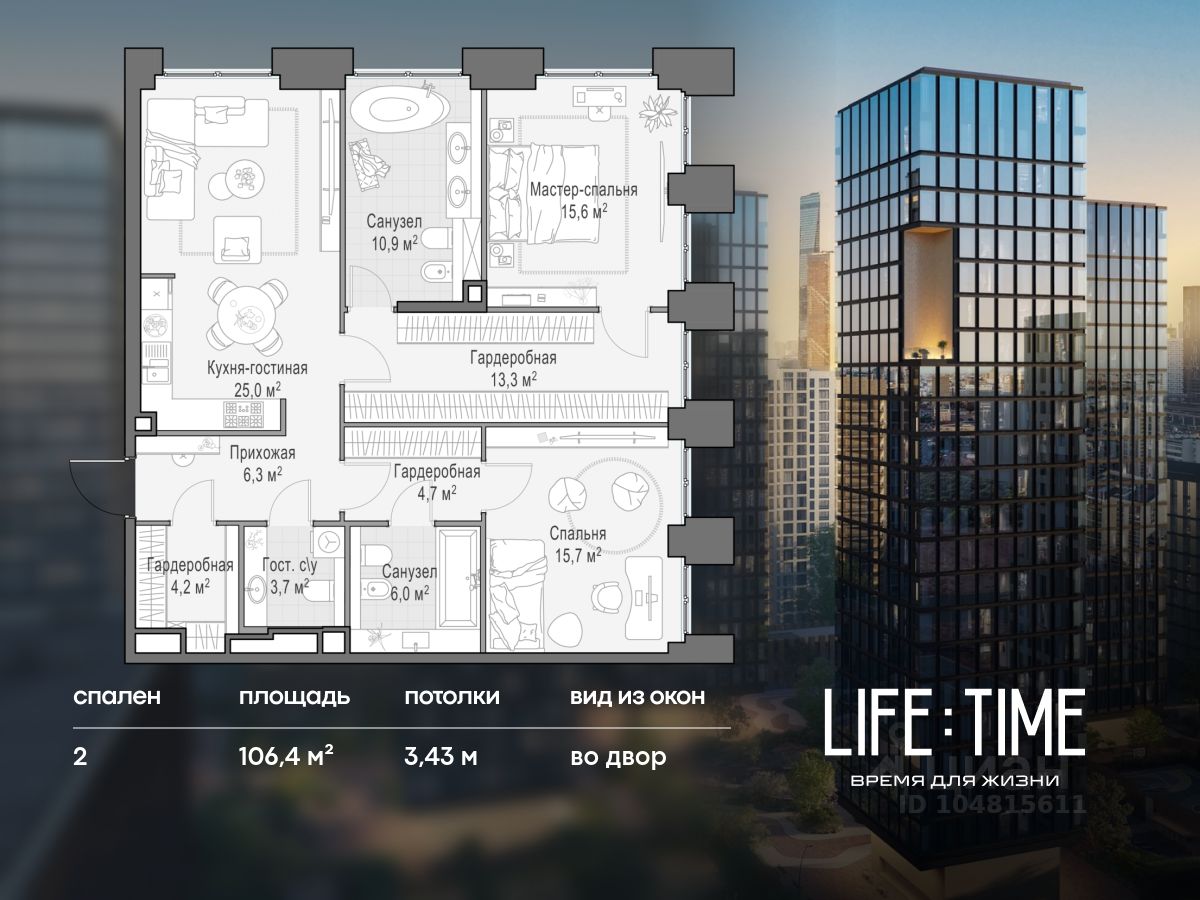 Life Time - роскошный современный квартал на Пресне, в наиболее быстро растущем премиальном районе ЦАО. Его насыщенная инфраструктура и выгодное расположение дарят время для жизни. Вы больше не тратите его на дорогу или ожидание, при этом ни в чём себе не отказывая. На территории предусмотрено всё для комфортной жизни: • двор-парк площадью 1,8 гектара с прудом и фонтанами; • Clubhouse - инфраструктурный центр в отдельном здании с исчерпывающими возможностями для спорта, отдыха и досуга только для жителей; • спортивная инфраструктура на улице и в помещении, в том числе бассейн длиной 25 метров, хот-таб, хаммам, сауна, бьюти-зона; • клубная гостиная с террасой; • всё для развития и досуга детей любого возраста, в том числе детский сад и школа. Life Time находится в центре сложившегося премиального района, в окружении многочисленных парков. Удобная транспортная доступность и прямой выезд на Звенигородское шоссе позволяют без проблем добраться до Садового кольца и Москва-Сити. Архитектурный стиль квартала - роскошный минимализм. Дома десятилетиями будут выглядеть современно. В Life Time представлен широкий выбор как квартир, так и особых форматов: двухэтажные пентхаусы с каминами и террасами, скай-виллы.