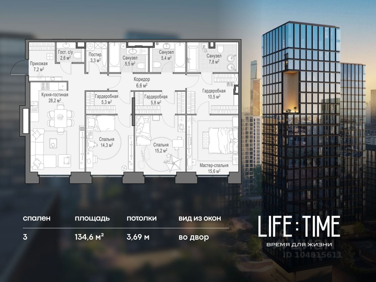 Life Time - роскошный современный квартал на Пресне, в наиболее быстро растущем премиальном районе ЦАО. Его насыщенная инфраструктура и выгодное расположение дарят время для жизни. Вы больше не тратите его на дорогу или ожидание, при этом ни в чём себе не отказывая. На территории предусмотрено всё для комфортной жизни: • двор-парк площадью 1,8 гектара с прудом и фонтанами; • Clubhouse - инфраструктурный центр в отдельном здании с исчерпывающими возможностями для спорта, отдыха и досуга только для жителей; • спортивная инфраструктура на улице и в помещении, в том числе бассейн длиной 25 метров, хот-таб, хаммам, сауна, бьюти-зона; • клубная гостиная с террасой; • всё для развития и досуга детей любого возраста, в том числе детский сад и школа. Life Time находится в центре сложившегося премиального района, в окружении многочисленных парков. Удобная транспортная доступность и прямой выезд на Звенигородское шоссе позволяют без проблем добраться до Садового кольца и Москва-Сити. Архитектурный стиль квартала - роскошный минимализм. Дома десятилетиями будут выглядеть современно. В Life Time представлен широкий выбор как квартир, так и особых форматов: двухэтажные пентхаусы с каминами и террасами, скай-виллы.
