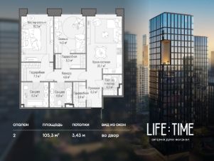 Life Time - роскошный современный квартал на Пресне, в наиболее быстро растущем премиальном районе ЦАО. Его насыщенная инфраструктура и выгодное расположение дарят время для жизни. Вы больше не тратите его на дорогу или ожидание, при этом ни в чём себе не отказывая. На территории предусмотрено всё для комфортной жизни: • двор-парк площадью 1,8 гектара с прудом и фонтанами; • Clubhouse - инфраструктурный центр в отдельном здании с исчерпывающими возможностями для спорта, отдыха и досуга только для жителей; • спортивная инфраструктура на улице и в помещении, в том числе бассейн длиной 25 метров, хот-таб, хаммам, сауна, бьюти-зона; • клубная гостиная с террасой; • всё для развития и досуга детей любого возраста, в том числе детский сад и школа. Life Time находится в центре сложившегося премиального района, в окружении многочисленных парков. Удобная транспортная доступность и прямой выезд на Звенигородское шоссе позволяют без проблем добраться до Садового кольца и Москва-Сити. Архитектурный стиль квартала - роскошный минимализм. Дома десятилетиями будут выглядеть современно. В Life Time представлен широкий выбор как квартир, так и особых форматов: двухэтажные пентхаусы с каминами и террасами, скай-виллы.