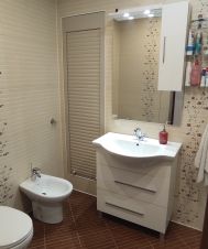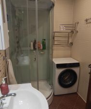 В ванной (площадь 4,3м²) установлена душевая кабина, биде и фильтры воды. Сантехнический шкаф закрывается роллетами.