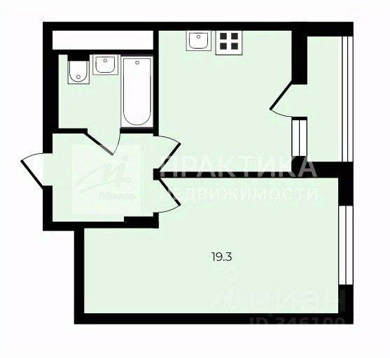 Изолированная комната, просторная кухня с лоджией, совмещенный санузел.