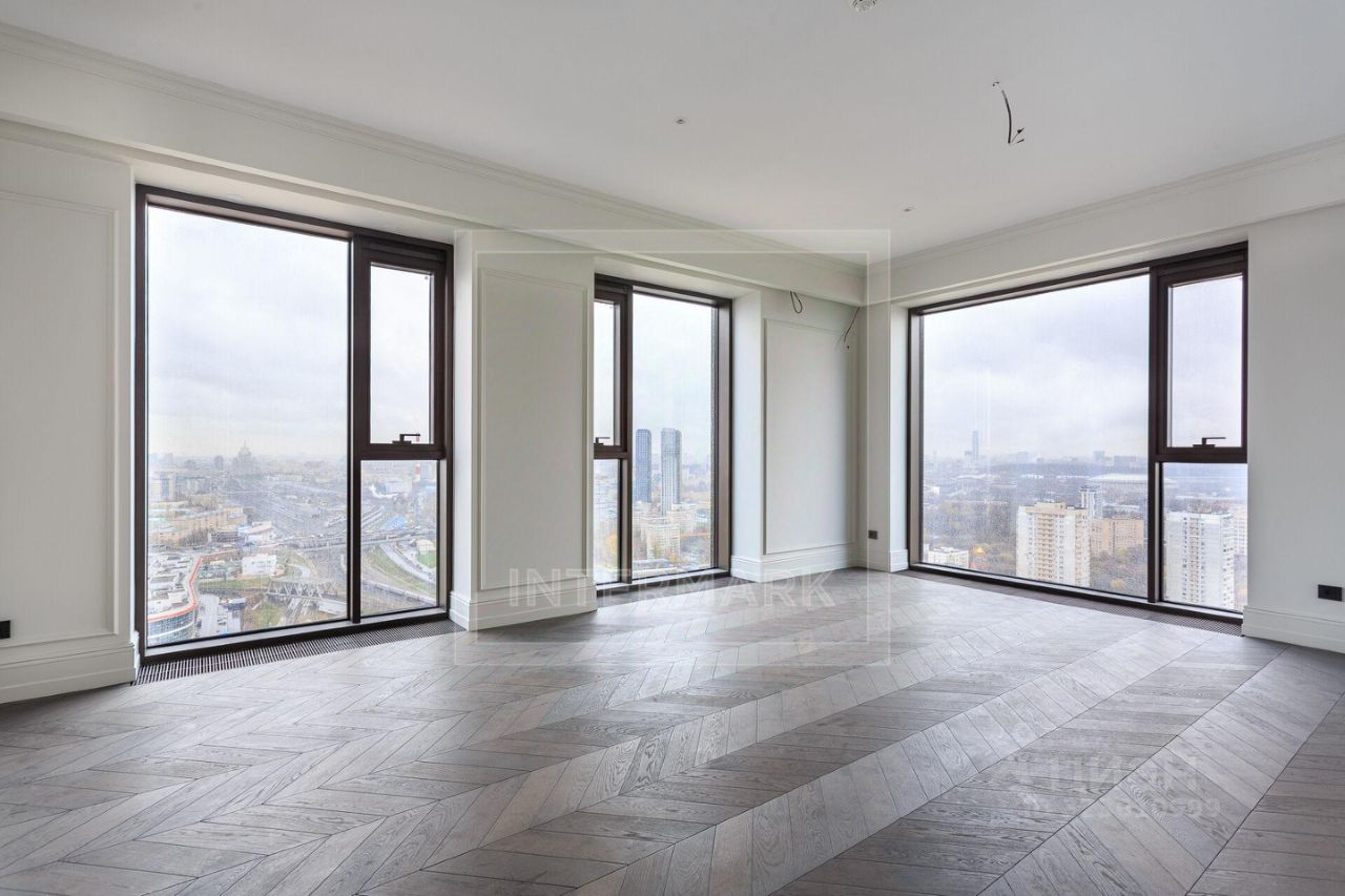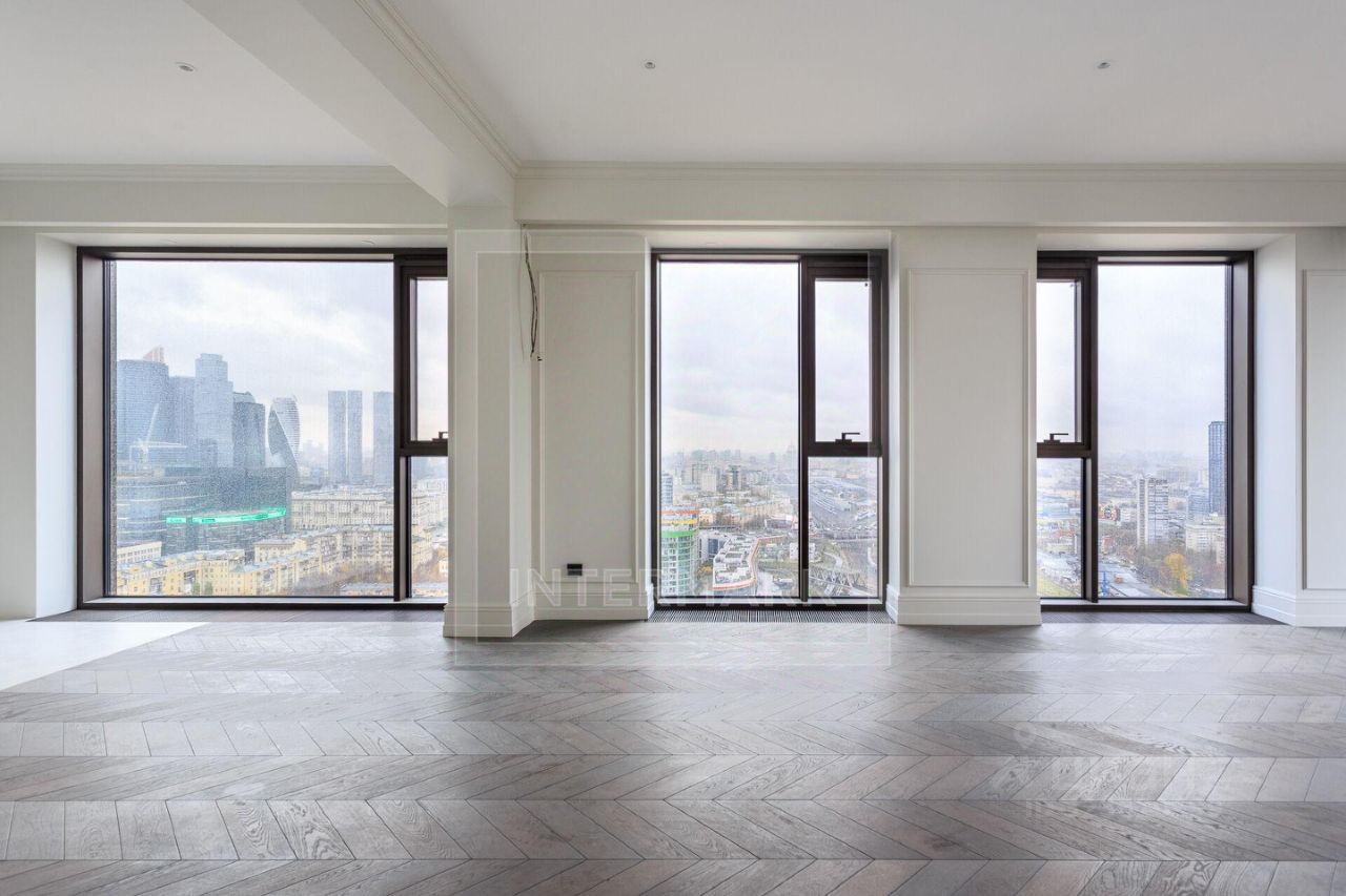 Выполнена дизайнерская отделка в стиле "вне времени". Высококачественные материалы, лаконичные решения и светлая палитра создают элегантное и наполненное светом пространство. Панорамные окна в пол, выходящие на три стороны света, обеспечивают великолепную инсоляцию и открывают захватывающие виды на небоскребы "Москва-Сити" и огни города.