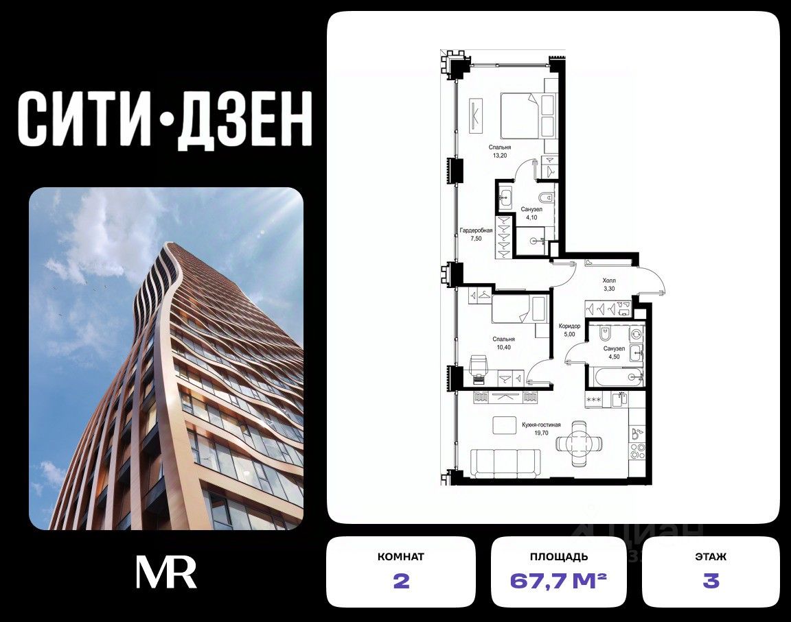 Продается 2-комнатная квартира от застройщика в жилом мультиквартале СИТИДЗЕН на 3-м этаже в корпусе #8. Общая площадь лота составляет 67.70 м²