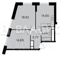 Квартира расположена на 30-м этаже монолитной новостройки 2023 года постройки по адресу: улица Петра Алексеева, 14. Благодаря высокому расположению открывается великолепный вид на город. Квартира не угловая, общая площадь — 57,5 кв. м, из которых 33,5 кв. м — жилая площадь, 14,6 кв. м — кухня. Высота потолков — 3,3 м, комнаты изолированы, окна выходят на улицу. В квартире один совмещённый санузел.