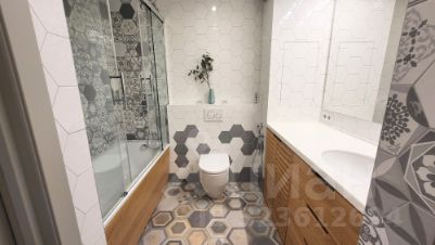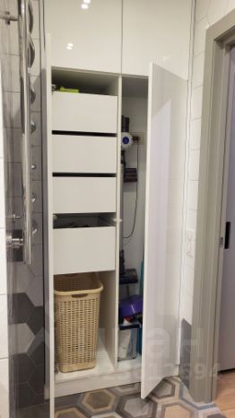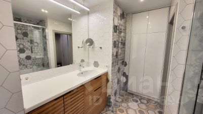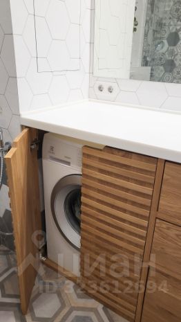 В санузле: шкаф из натурального дуба с местом под стиральную машину. Столешница из искусственного камня с врезной мойкой. Встроенная душевая система с потолочной лейкой Hansgrohe, гигиенический душ. Раздвижное душевое ограждение Gutewetter. Унитаз Laufen с инсталляцией. Электрический полотенцесушитель. Встроенный шкаф с местом под хоз блок.