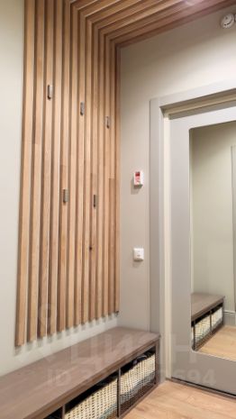 На полу инженерная доска Finex из натурального дуба в сухих зонах и на декоративной стене.