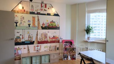 Проведено идеальное выравнивание стен. Американские обои в акцентных зонах. Остальные стены выкрашены антивандальной немецкой краской Fluger - можно чистить щеткой.
