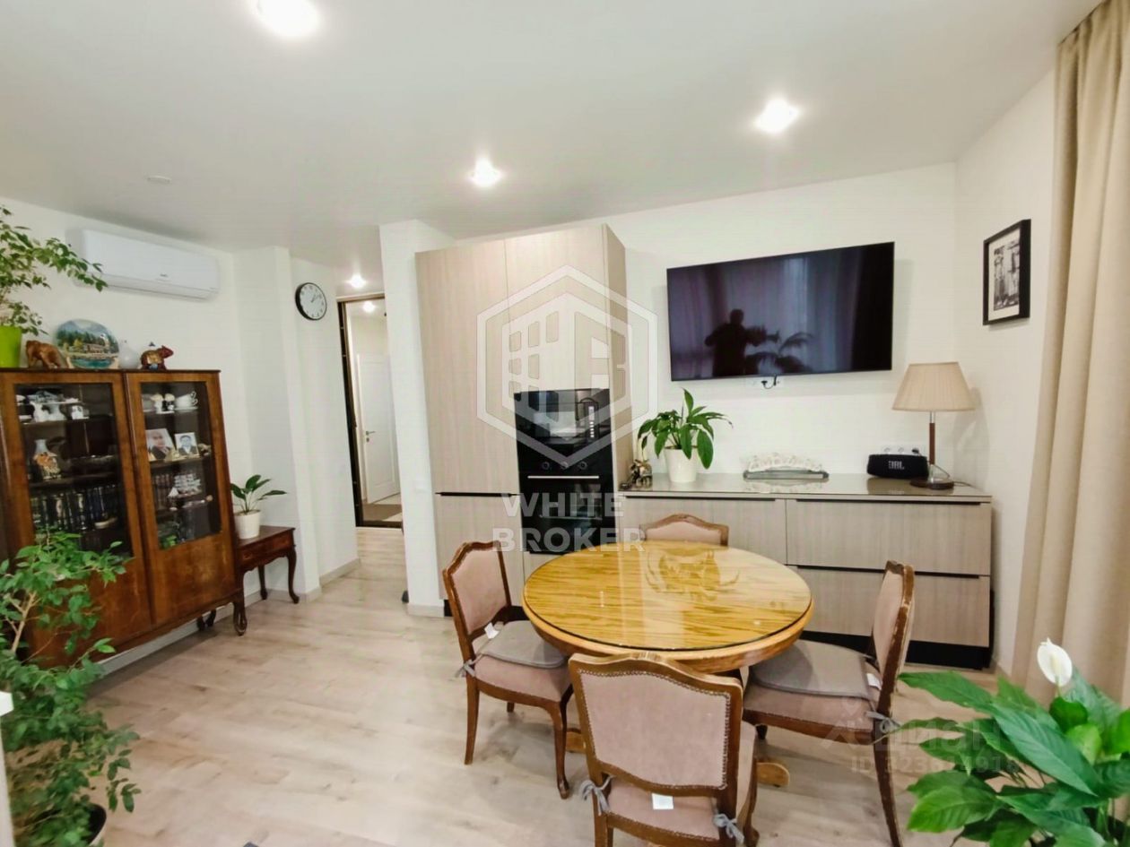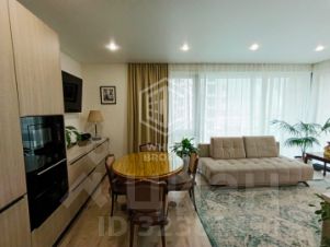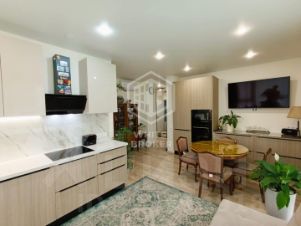 Сердце квартиры просторная кухня-гостиная, где гармонично сочетаются функциональность и уют. Кухонный гарнитур, выполненный на заказ, оснащен новейшей бытовой техникой, включая холодильник, варочную панель, духовой шкаф, микроволновую печь и посудомоечную машину. Панорамные окна, выходящие во двор, наполняют пространство естественным светом.