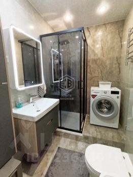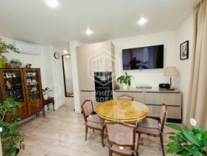 В квартире две полноценные спальни, одна из которых имеет собственную ванную комнату. Дополнительный санузел с душевой кабиной расположен в холле. Для поддержания комфортной температуры установлены кондиционеры. Есть собственное машиноместо, в стоимость квартиры не входит.