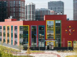 В лобби — зоны отдыха, переговорные, кафе и детские клубы. Архитектура современная, с панорамным остеклением и тёплой палитрой фасадов.