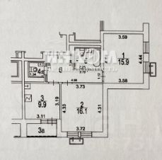 2. На кухне фартук из керамической плитки, электроплита, тумба с мойкой. Площадь кухни 9.9 кв.м;
