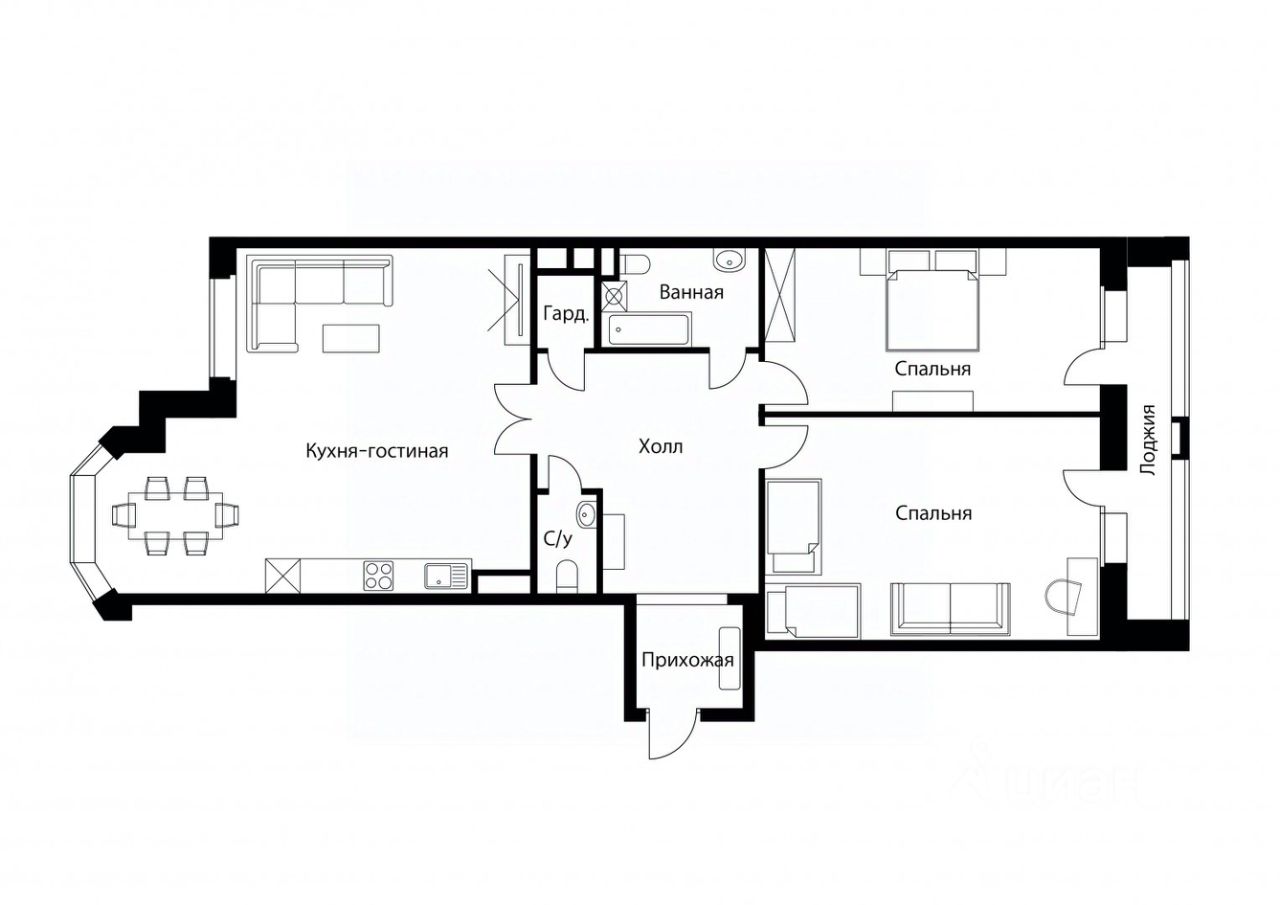 - 2 изолированные спальни с возможностью оборудования 3-й комнаты