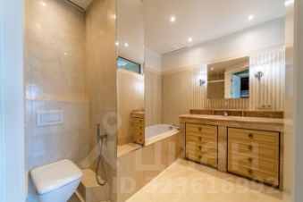 5)спальня 19,8 кв.м. с примыкающей ванной комнатой 7,3 кв.м. включающей: с мраморной столешницей и раковиной, ванной, душевой кабиной, туалет.