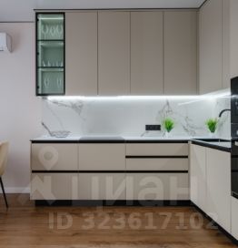 Установлена стильная кухня. Столешница- компакт плита. Духовой шкаф с функцией самоочистки, варочная панель, посудомоечная машина,