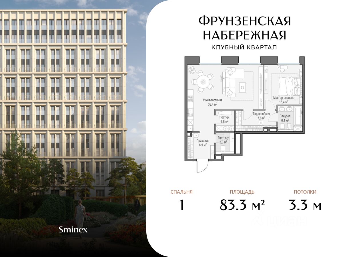 "Фрунзенская набережная" - единственный элитный клубный квартал на престижной и желанной Фрунзенской набережной, где нет и не появится новых домов такого класса. Для его жителей создан собственный просторный витражный парк площадью 3,1 гектара, где царит атмосфера загородной тишины и безмятежности. Это самый большой в элитном классе парк - он занимает 70% всей территории. Клубные дома скрыты от посторонних глаз и шума мегаполиса обильной зеленью и окружены парадной сталинской застройкой.