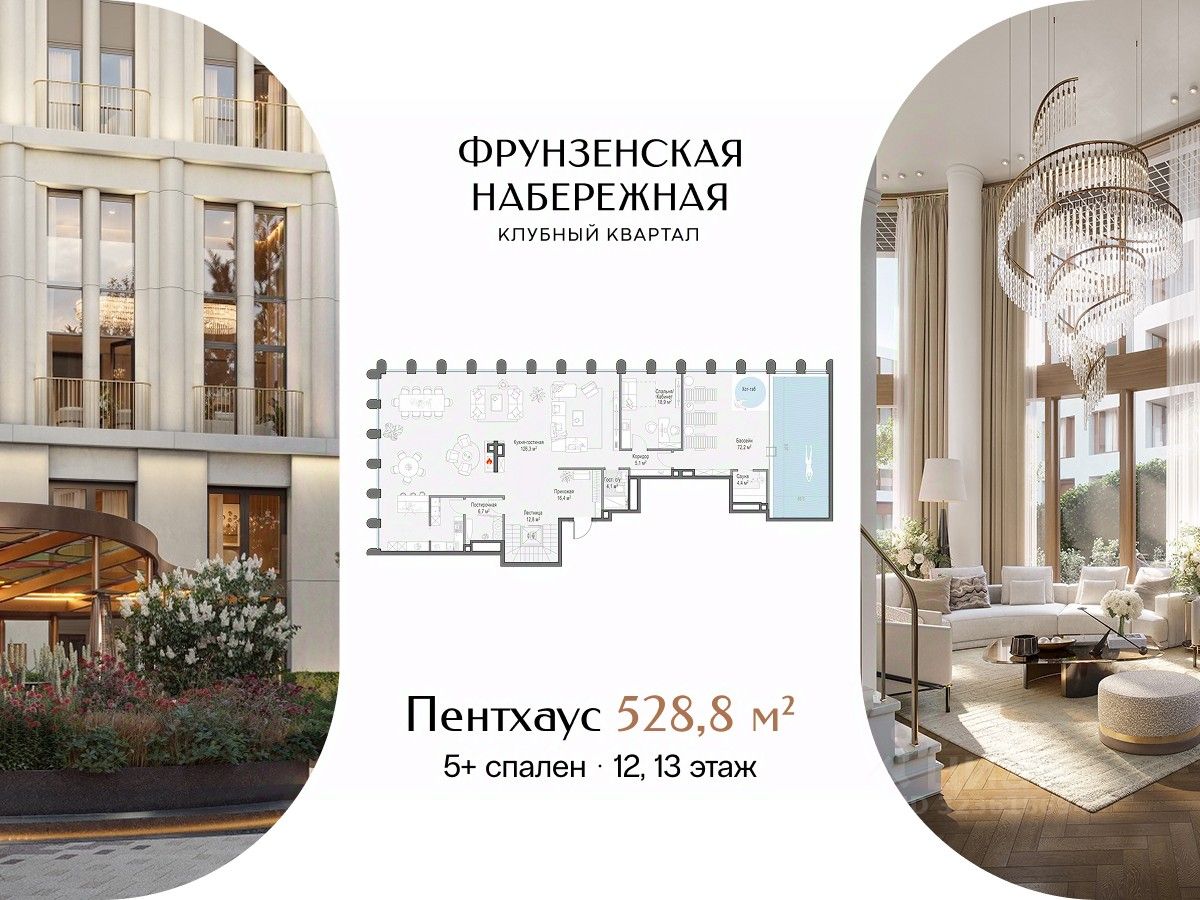 Клубный квартал "Фрунзенская набережная" - место для приватной и комфортной жизни в окружении людей со схожими ценностями. Здесь тихо, будто за городом: сталинская застройка и высокие сосны укрывают жителей от шума и посторонних глаз.