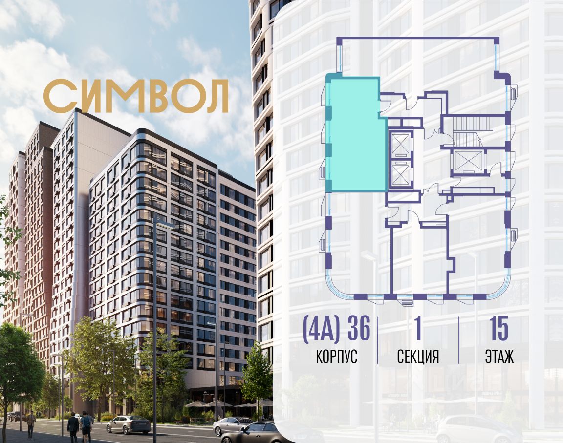 Продается 1-комнатная квартира от застройщика: общая площадь 45.40 м², жилая 15.40 м², кухня 20.80 м², 15-й этаж, жилой квартал "Гордость", корпус 36 (секция 1). Срок сдачи: 2 квартал 2029 года.