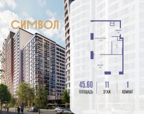 Продается 1-комнатная квартира от застройщика: общая площадь 45.60 м², жилая 16.20 м², кухня 21.20 м², 11-й этаж, жилой квартал "Гордость", корпус 36 (секция 1). Срок сдачи: 2 квартал 2029 года.