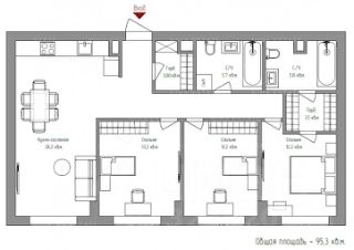 К продаже предлагается квартира площадью 95,3 квадратных метра в строящемся 1 корпусе по переуступке с сдачей в конце 2026 года.