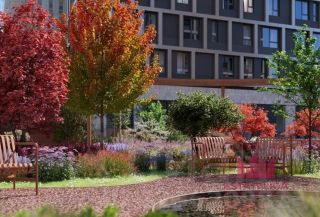 Собственный парк площадью 1,5 га, где будет расположена аллея известных брендов, рестораны и кафе с летними верандами для приятного времяпрепровождения и тихие сады для уединенного отдыха.