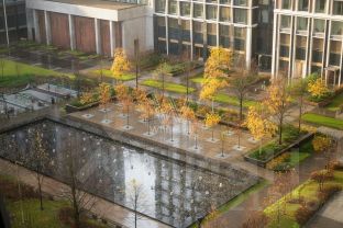 Благодаря панорамному остеклению пространство наполнено естественным светом, открываются виды на внутренний парк и линию фонтанов.