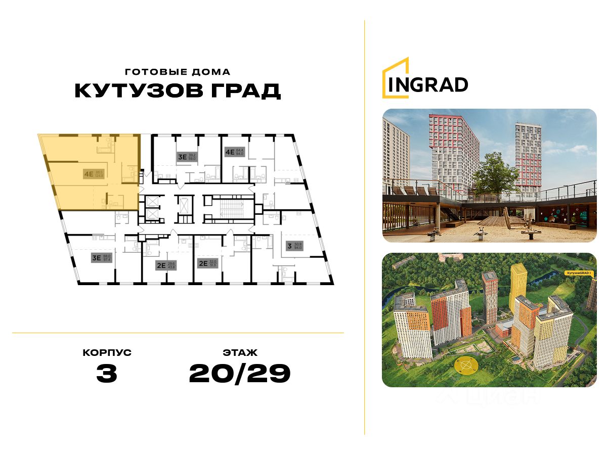 К покупке предлагается 4-спальная квартира площадью 124.60 кв.м, расположенная на 20 этаже 29-этажного корпуса 3, в жилом квартале бизнес-класса "Кутузов Град".