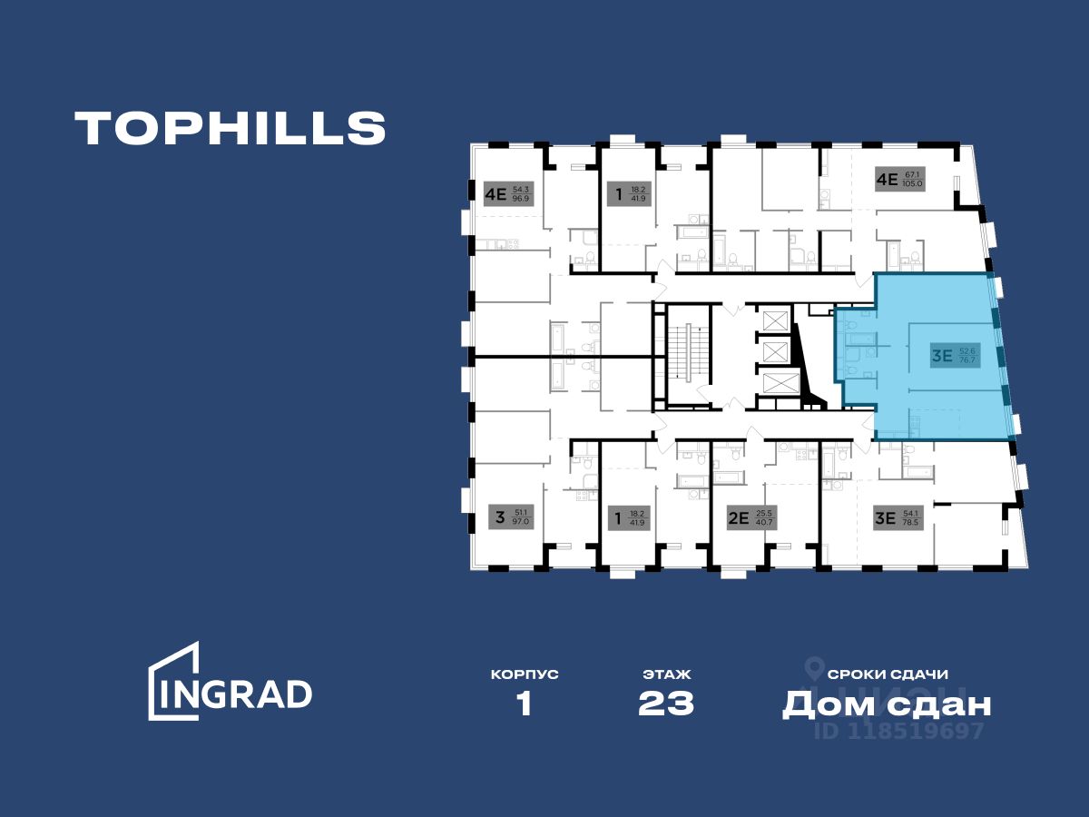 Прямая продажа от застройщика. В жилом квартале, расположенном в Нагорном районе Москвы, продаётся 3-спальная квартира площадью 76.40 кв.м без отделки. Квартира расположена на 23 этаже 26-этажного дома, корпус 1, в жилом квартале бизнес-класса TopHILLS (застройщик ГК Инград).