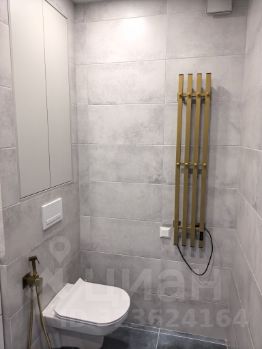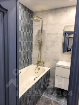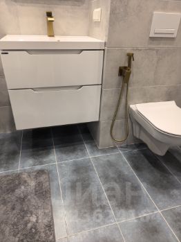 В совмещённой санузле установлена чугунная ванна Roca, тумба с раковиной, зеркало, унитаз с инсталляцией, полотенцесушитель, водонагреватель на 50 литров.