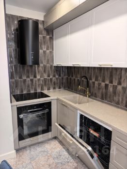 Кухня новая, оборудована встроенной бытовой техникой Weissgauff (варочная панель, вытяжка, духовка, посудомоечная машина, холодильник, стиральная машина с сушкой), столешница из искусственного камня.