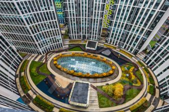 Из квартиры можно спуститься во внутренний двор, который располагается на 2м этаже здания, он полностью изолирован от улицы. Доступ по ключам домофона или отпечаткам пальцев.